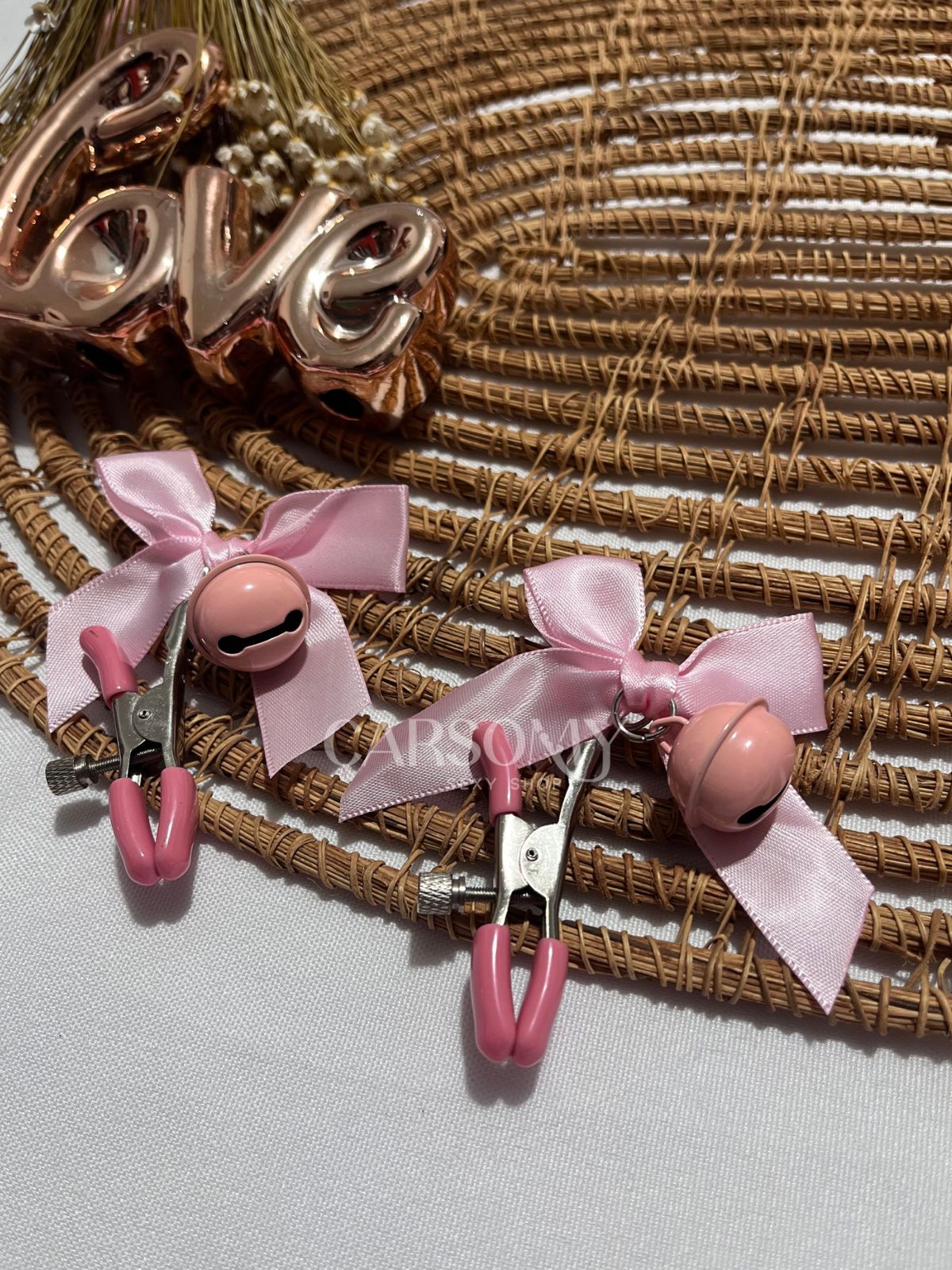 Se entregar ao prazer nunca foi tão encantador! Os Grampos de Mamilos com Sinos e Lacinhos são ideais para quem adora explorar o lado submisso sem perder a delicadeza. Com acabamento em lacinho rosa e sininhos metálicos que tilintam a cada movimento, eles despertam sensações únicas que misturam tesão, charme e submissão.