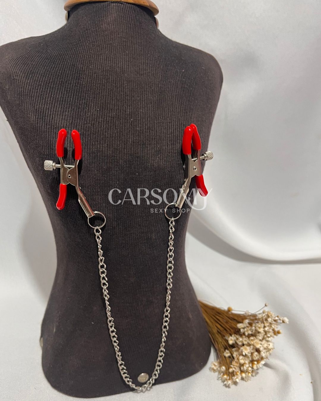 Adicione um toque de ousadia e elegância às suas noites com os Grampos para Mamilos com Presilhas Ajustáveis e Corrente. Um acessório sensual ideal para quem deseja explorar novas sensações e intensificar as experiências a dois.